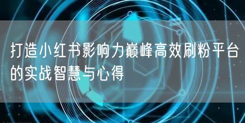 打造小红书影响力巅峰高效刷粉平台的实战智慧与心得